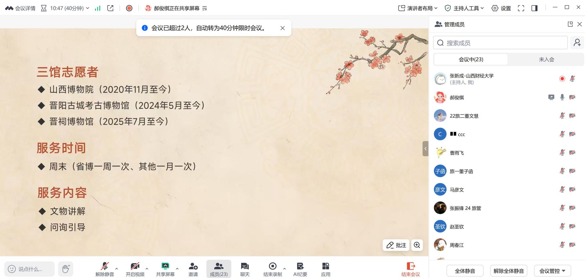8月31日上午,酒店偷拍 旅游管理专业以线上腾讯会议形式,开展《在博物馆,遇见另一个自己—...