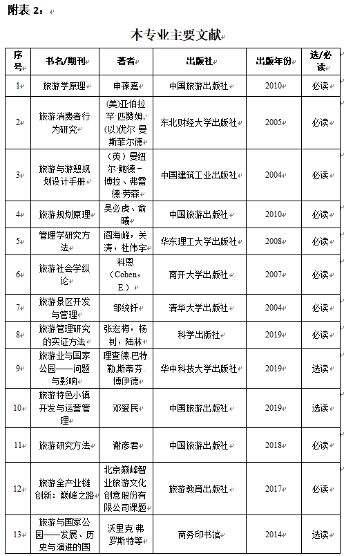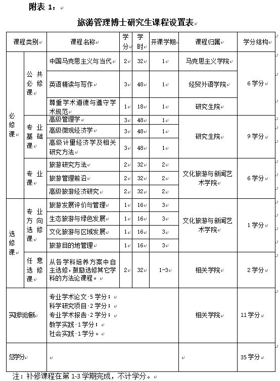 旅游管理博士研究生培养方案(120203)