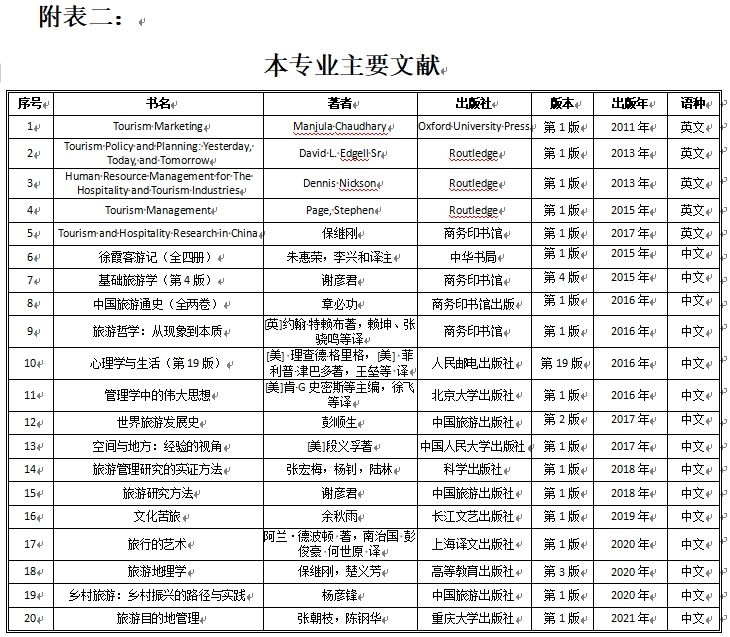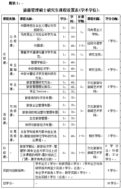 旅游管理硕士研究生培养方案(120203)