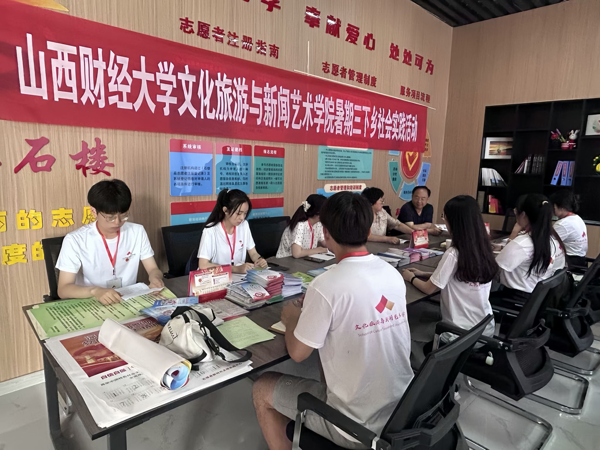 “文新小队”结合专业特色,积极开展“同音筑梦,推普赋能”暑期社会实践活动,重点走访山西省吕梁市石楼县2个乡村、1个社区、5个特色实践地点,承担普及普通话的历史使命,深入了解了石楼县的人文、历史以及志愿形式的创新。通过宣讲红色文化故事,运用普通话讲述非遗文化,组织乡村速写,合作设计村落图标的创新方式开展红色研学,推广普通话,推动了当地经济和文化的发展,并与石楼县达成初步合作意向。队员们在心中厚植爱国情怀,在行动上助推产业发展,在精神上点燃助农激情,以务实之心下乡,加快乡村振兴。
