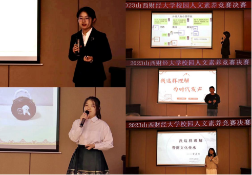 入围决赛的选手紧扣“传承三晋优秀文化,展现山财青年风采”主题进行演讲,从个人成长、传统手工艺、晋商文化传承等多角度切入,从不同的层面进行深入剖析,讲述自己对优秀传统文化的理解,传递自身传承与创新中华优秀传统文化的使命意识。选手们或娓娓道来,或高亢激昂,精彩的表现赢得了评委老师们的一致好评。