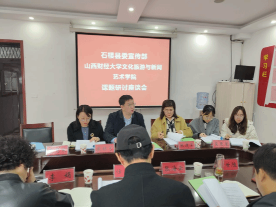 揭牌仪式结束后,双方在石楼县委宣传部会议室开展了课题研讨座谈会,针对“石楼县文化保护传承弘扬发展研究”和“石楼县农旅康融合发展研究”两个课题进行了深入交流和探讨,并就之后旅游、休闲康养等方面进一步合作达成了一致意见。今后,双方将充分发挥各自优势,积极探索合作新模式,不断拓展合作领域,共同推动石楼县文化、旅游、休闲康养等相关产业的发展,为地方经济建设作出更大的贡献。