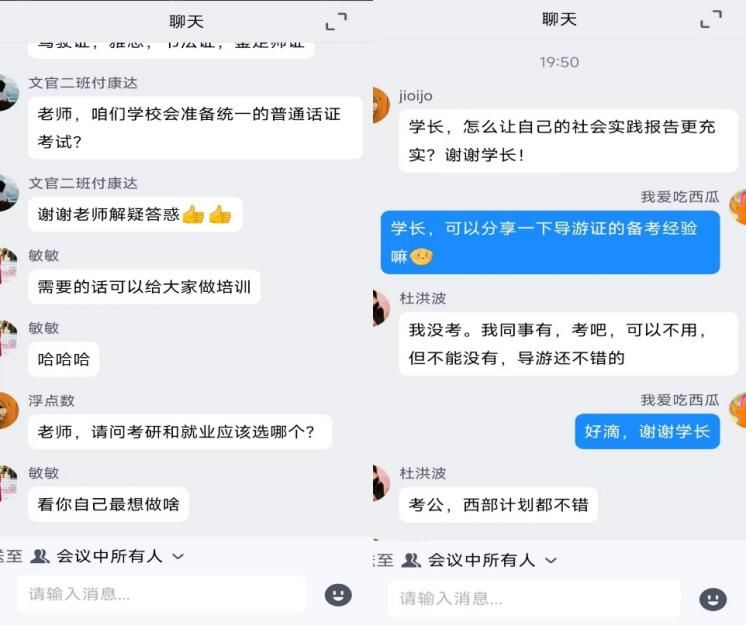 讲座的最后,大家面对大学期间需要考取的证书有哪些,备考的策略和经验以及升学还是就业的疑惑提出了问题,参会的焦敬华老师、张黎敏老师以及杜洪波学长为大家耐心地进行了解答,相信此次答疑解惑讲座会助力同学们在未来的学习生活中行稳致远。