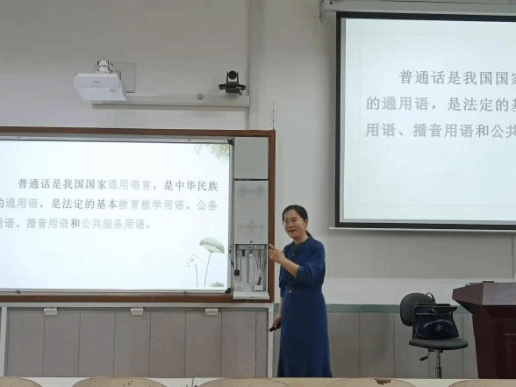 刘艳清老师首先从国家、社会、个人层面给同学们讲了推广普通话的重大意义。接着,她介绍了我校“推普兴乡”志愿服务队以及团队在武乡县、娄烦县及柞水县推广普通话的经历。最后,刘老师就同学们提出的问题给予了一一解答,极大地激发了同学们推广普通话的兴趣。